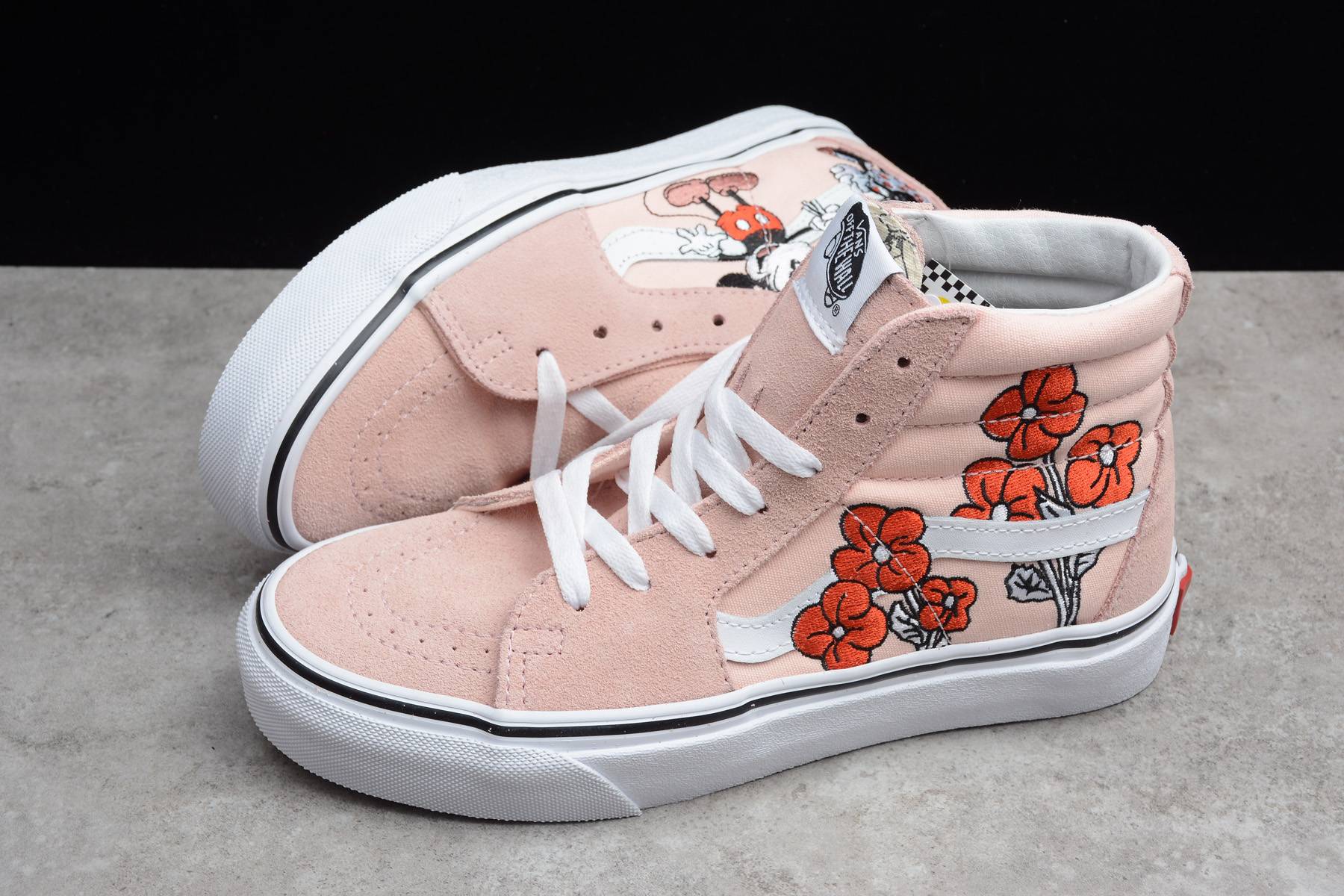 Заказать поиск кроссовок Vans Sk8-Hi Disney Mickey and Minnie с бесплатной доставкой. Розовая мульт-расцветка, на которой Микки дарит цветы Минни. Очередная коллаборация Vans и Disney.
