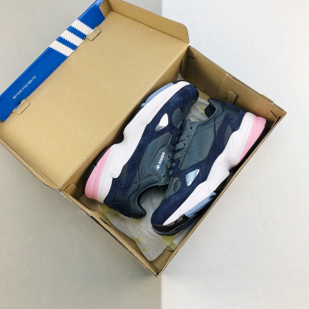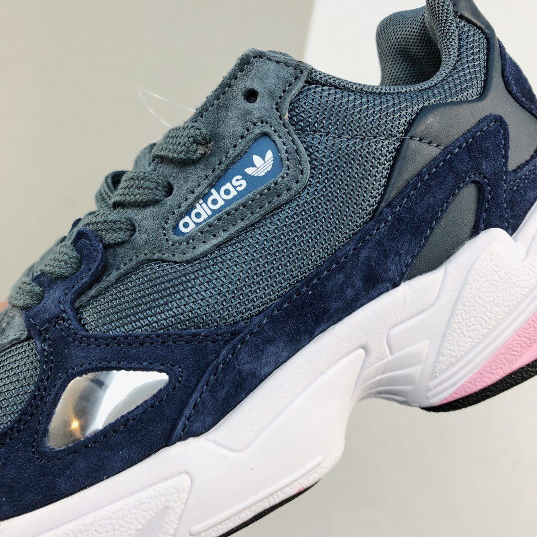 Заказать поиск кроссовок Wmns adidas Falcon Raw Grey с бесплатной доставкой Громоздкая модель от Adidas для дам. Изготовлен из замши и сетки. Этот цвет синий с белым и розовым. Производство называет этот цвет сырым, выглядит синим.