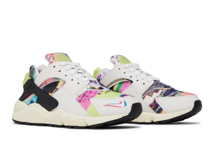 Женские кроссовки Nike Air Huarache 'Pixel' с уникальным дизайном, отдающим дань уважения винтажным видеоиграм 90-х годов. Пиксельная графика придает яркие оттенки эластичному текстильному верху, укрепленному белыми кожаными накладками и каркасом пятки из TPU. Светящиеся в темноте детали украшают язычок Huarache и ремешок на пятке с логотипом Nike. Кроссовки опираются на белоснежную подошву Phylon, укрепленную резиновой подошвой с вафельным рисунком.
