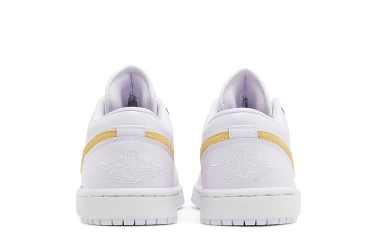 Женские Air Jordan 1 Low "Barely Grape" имеют верх из гладкой кожи, белую основу с накладками на носке и пятке приглушенного лавандового оттенка. В дополнение к желтому замшевому логотипу Swoosh, элементы брендинга включают значок Jumpman на язычке и простроченный логотип Wings на задней части пятки. Кроссовки имеют стандартную резиновую подошву, дополненную подошвой Air-sole, заключенной в легкий полиуретан.