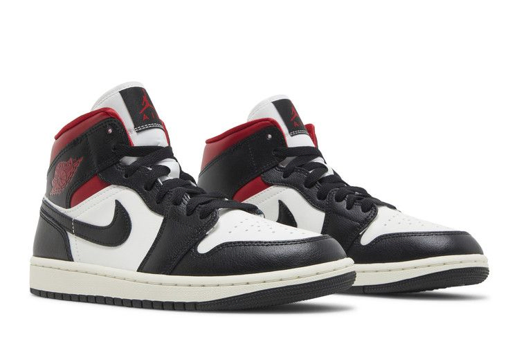 - Кроссовки Wmns Air Jordan 1 Mid 'Black Sail Gym Red'