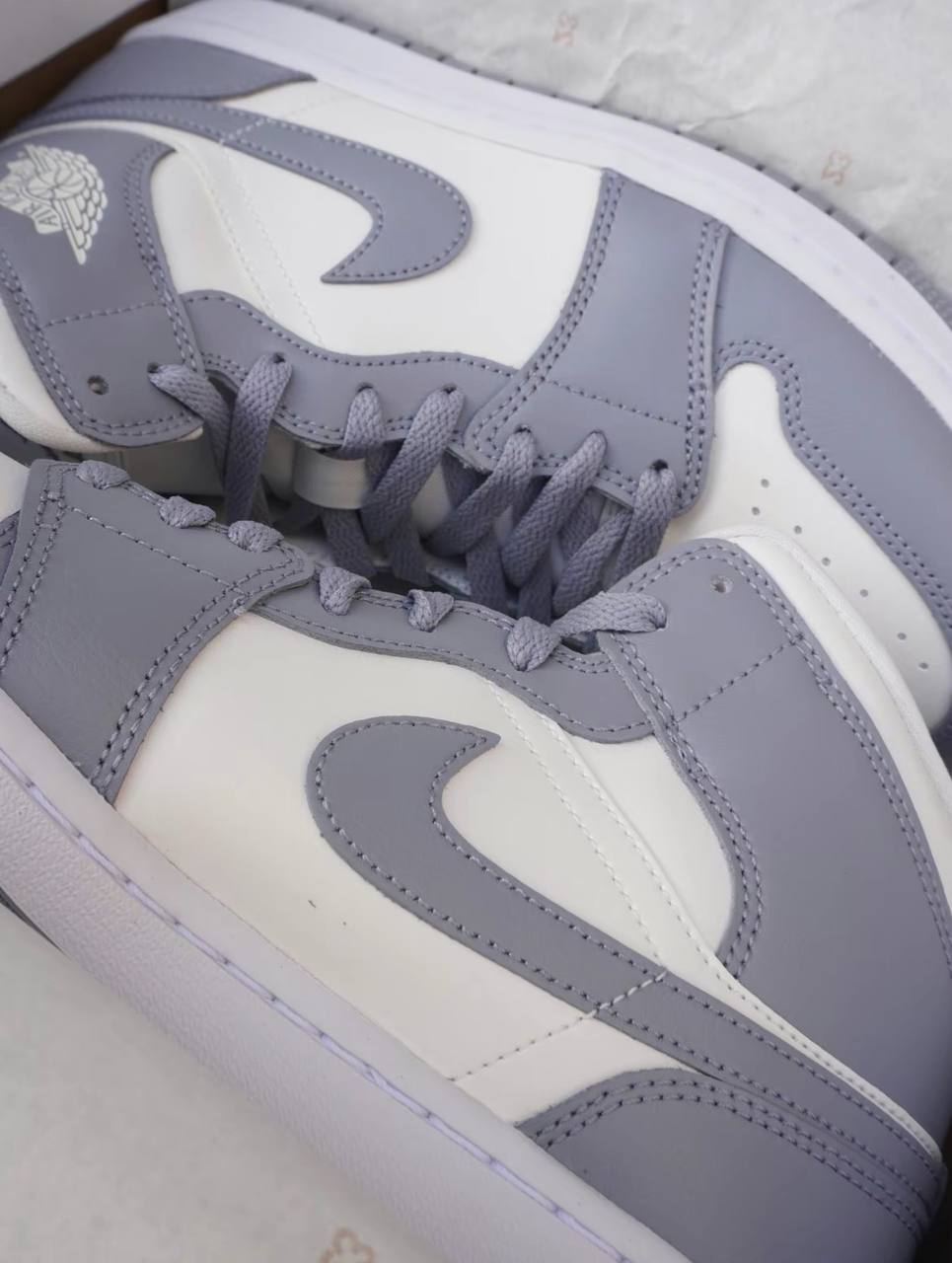 Женские кроссовки Wmns Air Jordan 1 Mid Stealth представляют серую расцветку вечного силуэта. Верхняя часть кроссовок выполнена из цельной кожи и имеет строгий белый цвет с серыми акцентами на воротнике, Swoosh, накладке на носке и пятке. Значок Jumpman украшает тканый язычок, а ретро-логотип Wings расположен на лодыжке. Кроссовки опираются на резиновую подошву с амортизацией Air-sole в пятке и сцепным рисунком под подошвой.- Цвета: Sail/Stealth/White
