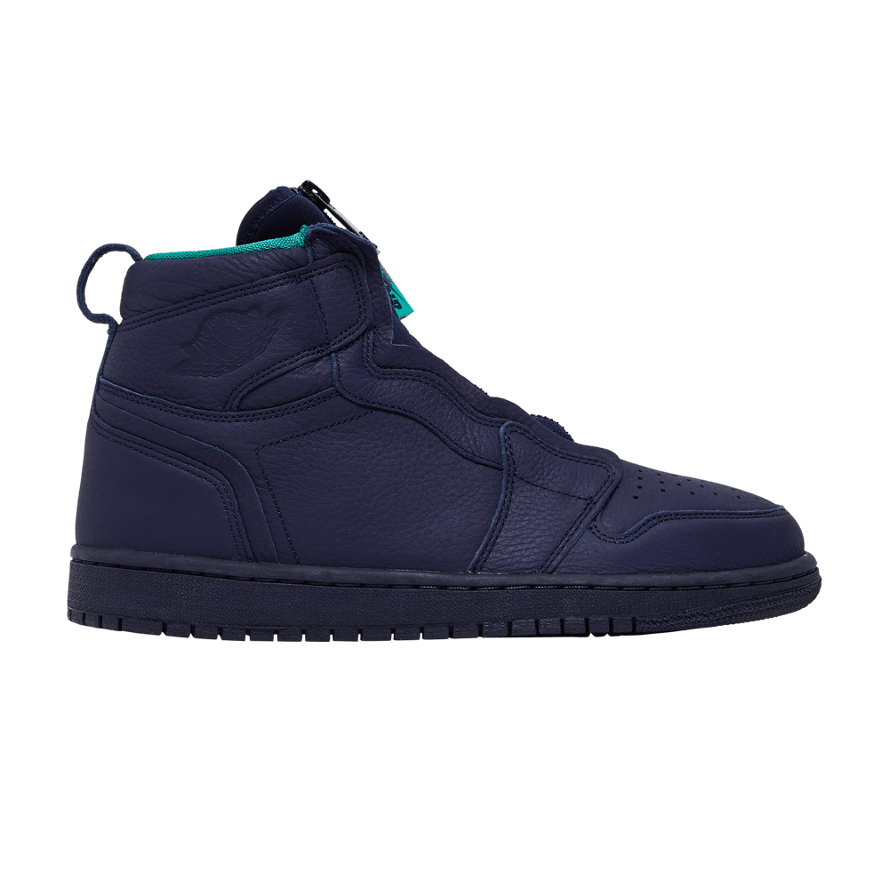 Кроссовки Wmns Air Jordan 1 Retro High Zip 'Blackened Blue' имеют схожую форму с силуэтом AJ1 1985 года, но при этом отличаются современными деталями дизайна. Выпущенные в октябре 2018 года и изготовленные исключительно для женщин, кроссовки с высоким верхом выполнены в монохромной расцветке Blackened Blue с едва заметными оттенками зеленого на бирке и подкладке - кивок на цвета команды Charlotte Hornets. Застежка-молния без шнурка помогает легко надевать и снимать кроссовки.