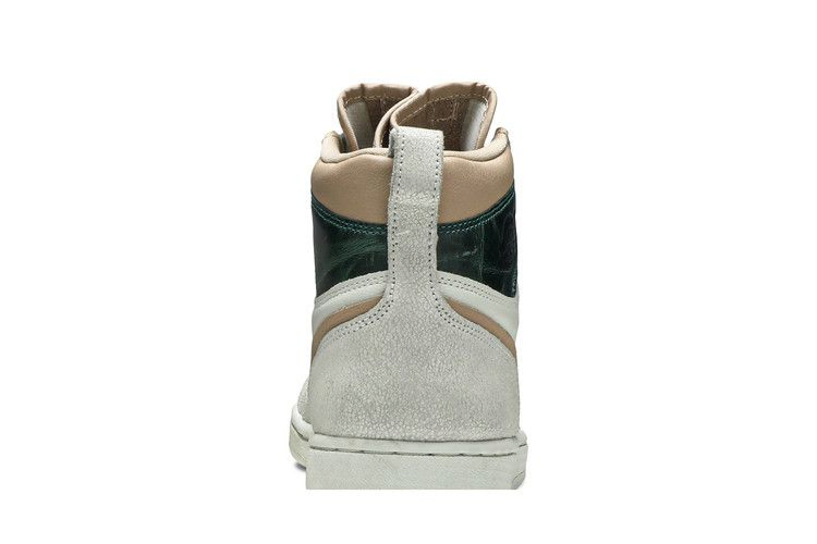 Кроссовки Wmns Air Jordan 1 Retro High Zip 'Mystic Green', выполненные из первоклассных материалов и застегивающиеся на молнию, переосмысливают икону 85-го года, придавая ей смелую эстетику. Этот женский эксклюзив, выпущенный в июне 2019 года, отличается сочетанием различных фактур кожи в своей конструкции - контраст гладких панелей с деформированной кожей, обработанной кракелюром. Преимущественно белая модель подчеркнута перфорацией Mystic Green в области носка и лодыжки, а бежевый цвет украшает воротник и пятку. Логотипы Swoosh убраны, вместо них на шнурках размещена бирка, а застежка-молния заменяет традиционную систему шнурков.