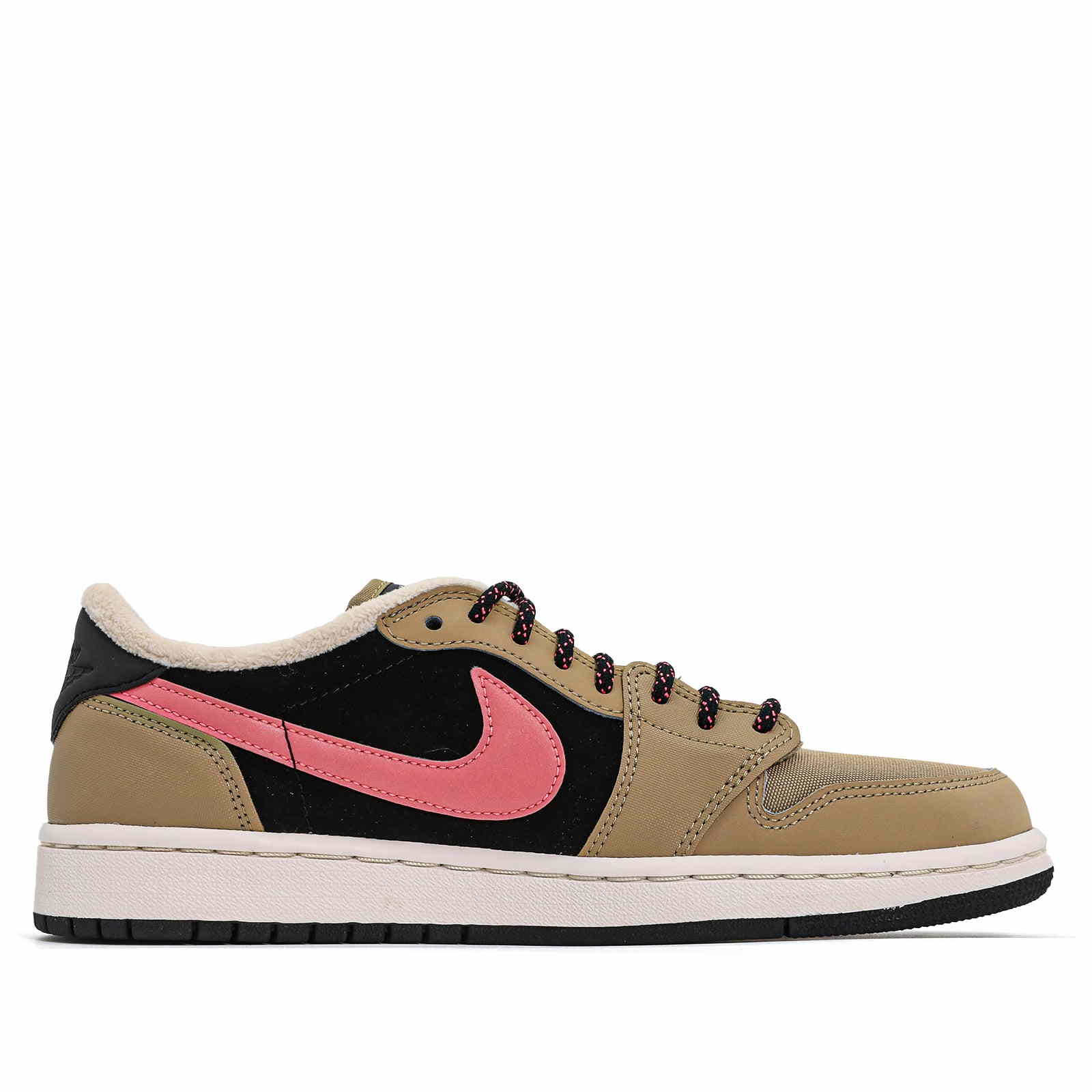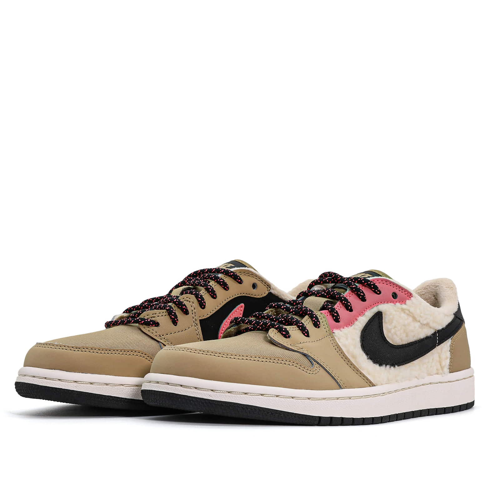 Кроссовки Wmns Air Jordan 1 Retro Low Fleece Parachute Beige - это эксклюзивная версия оригинала.Низкий верх из бежевой кожи с логотипом Nike Swoosh на флисовой детали и шнурки в яркую крапинку подчеркивают их индивидуальность. Модель Air Jordan 1 Low дополнена брендом Nike Air на кожаном язычке и логотипом Jordan Wings на пяточной части. Белая мидсоль с технологией Air и подошва с протектором завершают дизайн.- Цвета: Parachute Beige/Black-Beach