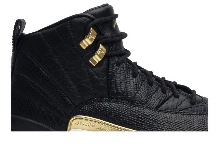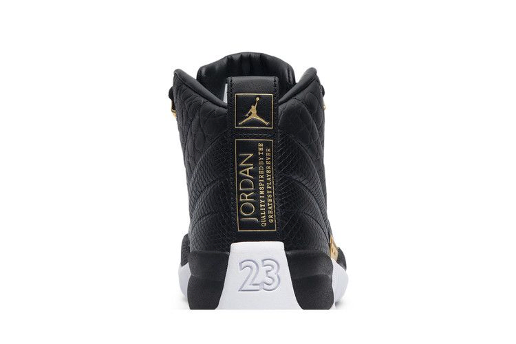 В кроссовках Wmns Air Jordan 12 Retro 'Reptile' использованы детали классической модели 1996 года и дополнены роскошными элементами стиля. Этот женский эксклюзивный кроссовок, выпущенный в апреле 2019 года, имеет оригинальную строчку AJ12, вдохновленную флагом восходящего солнца Японии. Верх из черной кожи украшен экзотической текстурой под рептилию и золотыми акцентами. Это издание дополнено классической амортизацией Zoom и участками протектора "елочка".