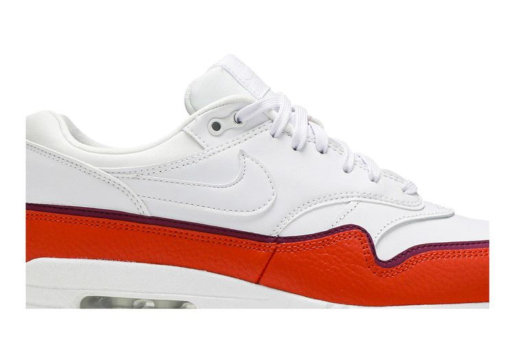 Nike Wmns Air Max 1 'Double Layer - Red' добавляет смелые акценты в полностью белый дизайн. Выпущенные в пакете из трех штук в марте 2019 года, кроссовки сочетают хрустящий белый верх с ярким красным оттенком и нежно-фиолетовой подкладкой, покрывающей брызговик и обволакивающей пятку из шагреневой кожи. Цвет разбавлен сплошной белой подошвой с культовым видимым блоком Max Air.