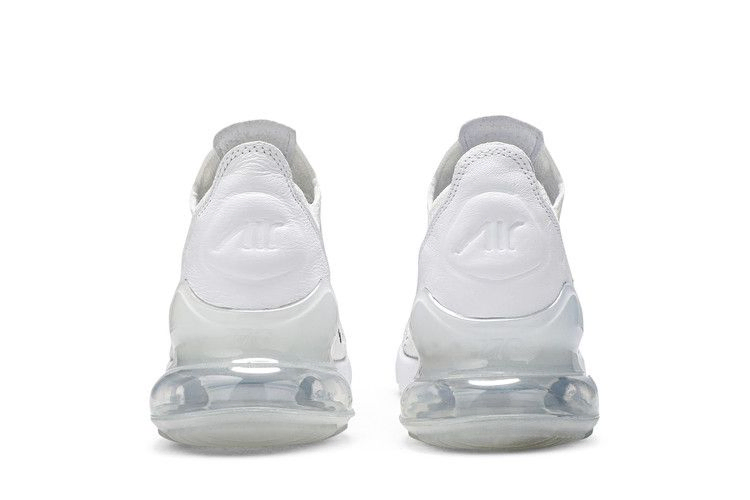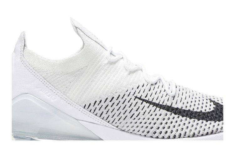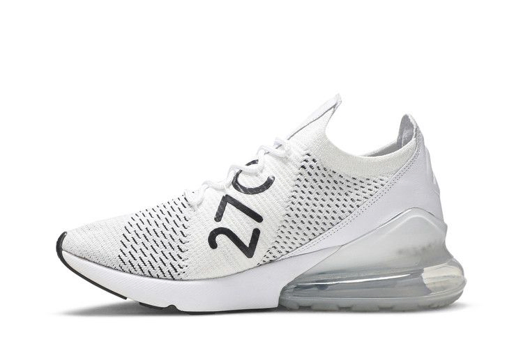 Инновационные кроссовки Nike Air Max 270, обладающие мегаразмерным 270-градусным блоком Max Air, как и их тезка, в мае 2018 года получили ультрагладкий ледяной дизайн. Кроссовки Wmns Air Max 270 Flyknit, созданные для женщин, имеют верх из материала Flyknit с носочным воротником в белом, чистом платиновом и черном цветах, а белая промежуточная подошва, переходящая в ледяной блок Max Air на пятке, дополняет образ.