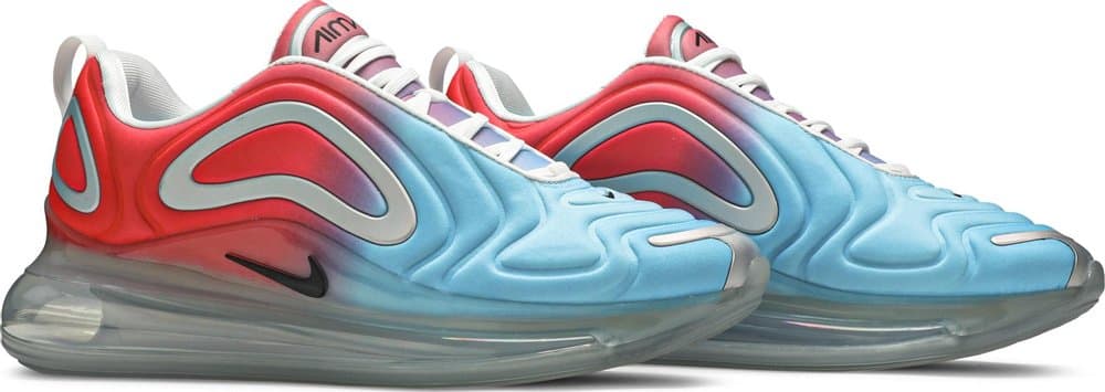 В 2019 году Nike представили новую модель Air Max 720. Одна из первых расцветок, выпущенных в рамках дебюта, получила название "Pink Sea". Технология Air обеспечивает максимальный комфорт и амортизацию. Верх кроссовок выполнен из синтетического материала с градиентной отделкой синего и красного цветов. Такой дизайн выглядит ярко и смело, привлекая внимание окружающих.