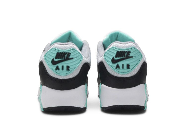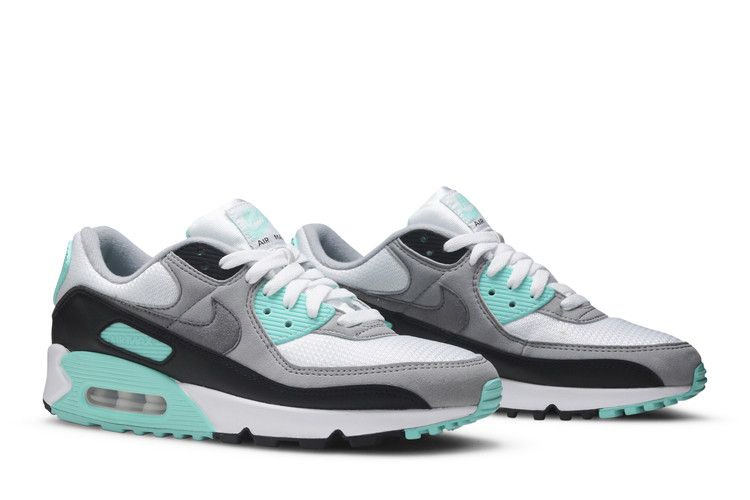 Отмечая 30-летие ретро-бегунов, женские Air Max 90 "Turquoise" демонстрируют обновленную модель, которая черпает вдохновение в оригинальном дизайне Тинкера Хэтфилда 1990 года. Белый сетчатый верх кроссовок дополнен серыми замшевыми накладками, бирюзовыми акцентами и черным кожаным брызговиком, а на подошве из пеноматериала установлена новаторская подошва с видимой подошвой Air большего размера, чем у предшественника.