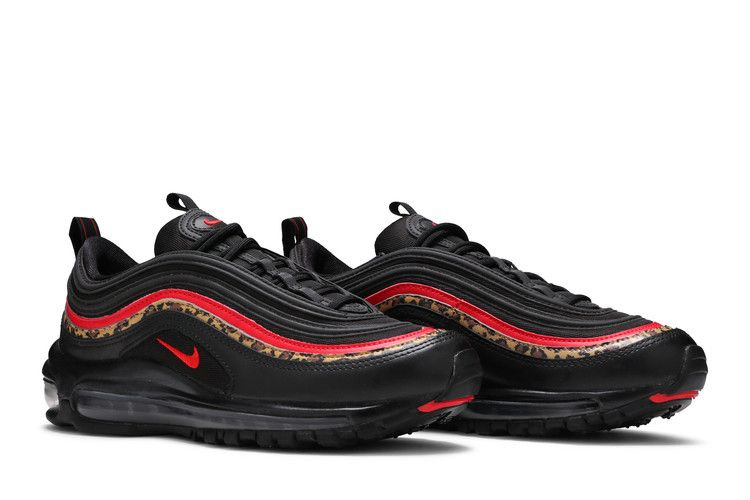 Модель Nike Air Max 97, изначально разработанная Кристианом Трессером, получила обновление с принтом в виде Wmns Air Max 97 'Leopard Pack'. Впервые представленная в ноябре 2018 года модель с леопардовым рисунком из красной кожи, эта версия с черным, принтованным и красным университетским цветом была анонсирована несколькими месяцами позже, в январе следующего года. Помимо яркого принта и цветовых акцентов, эти женские кроссовки предлагают инновационную систему шнуровки для индивидуальной посадки и классический видимый блок Max Air.