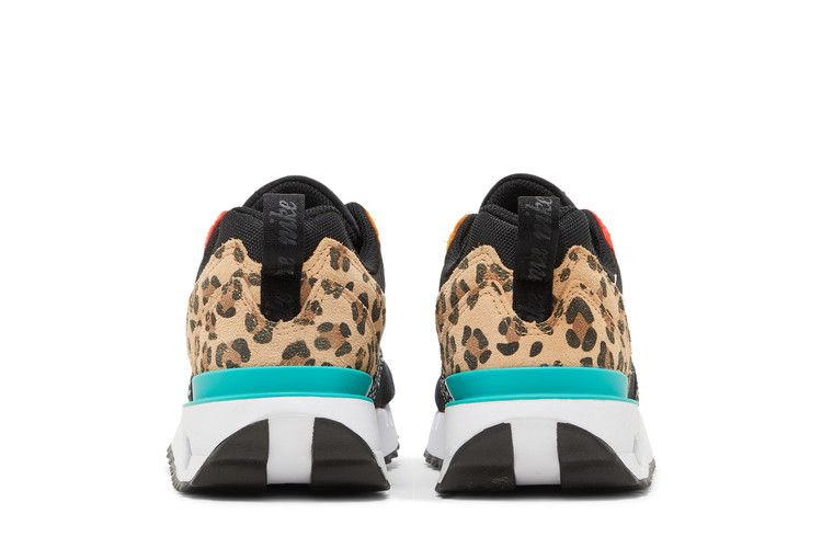 Женские кроссовки Nike Air Max Dawn SE "Safari Animal" привносят привлекательные узоры в ретро-стиль. Верхняя часть из воздухопроницаемой черной сетки с накладкой в виде отпечатка сафари на носочной части и пяткой из синтетической замши, покрытой черными и коричневыми леопардовыми пятнами. Контрастный цвет придает фиолетовый нубук на носке, бирюзовый фиксатор пятки и несочетаемые накладки на глаза цвета загара и красного хабанеро. Лоскутный дизайн компенсируется строгой белой подошвой из пеноматериала с заметным блоком Max Air в пятке.
