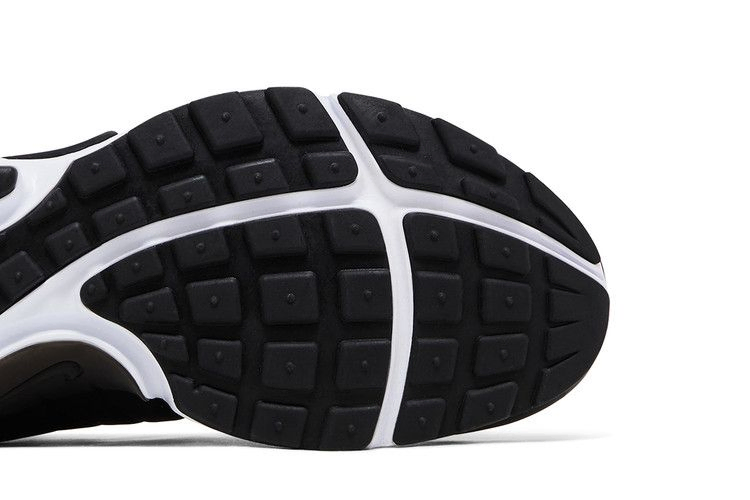 Nike Air Presto представлены в минималистичной цветовой палитре и имеют полностью черный сетчатый верх, образующий подобие носка. Подошва выполнена в белом цвете, а полупрозрачная система фиксации облегает среднюю часть стопы, обеспечивая большую поддержку. Футболка для вашей ноги" изначально была доступна в размерах футболок (small, M, XXL и т. д.) благодаря своему облегающему дизайну.