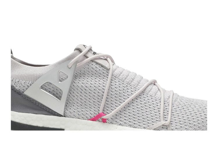 Женские кроссовки Arkyn 'Lux Luster', сочетающие в себе беговое наследие adidas и прогрессивный дизайн, отличаются серебристым трикотажем, интегрированным в легкий верх из материала Primeknit. Воротник, напоминающий носок, оснащен кожаной петлей на пятке и большим язычком, а серая замшевая стойка на пятке обеспечивает дополнительную устойчивость и поддержку. Амортизация обеспечивается полноразмерной промежуточной подошвой Boost.