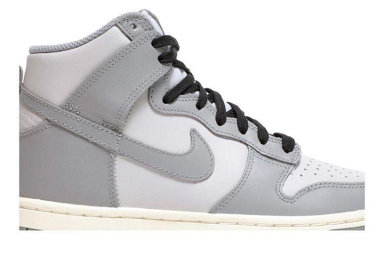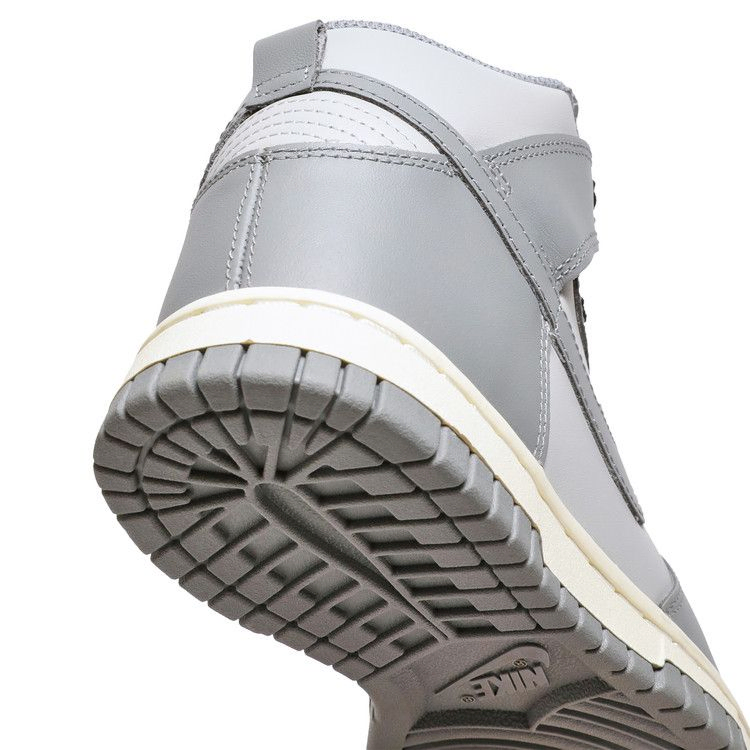 Женские кроссовки Nike Dunk High "Aged Grey" сочетают в себе нейтральную цветовую палитру и винтажную эстетику. Различные оттенки серого цвета представлены на цельнокожаном верхе, закрепленном черными шнурками и оснащенном перфорацией для улучшения воздухопроницаемости. Мягкий воротник с высокой посадкой сочетается с гибким нейлоновым язычком, обеспечивая комфортную посадку. Кроссовки опираются на прочную резиновую подошву с предварительно пожелтевшими боковинами и серой резиновой подошвой.