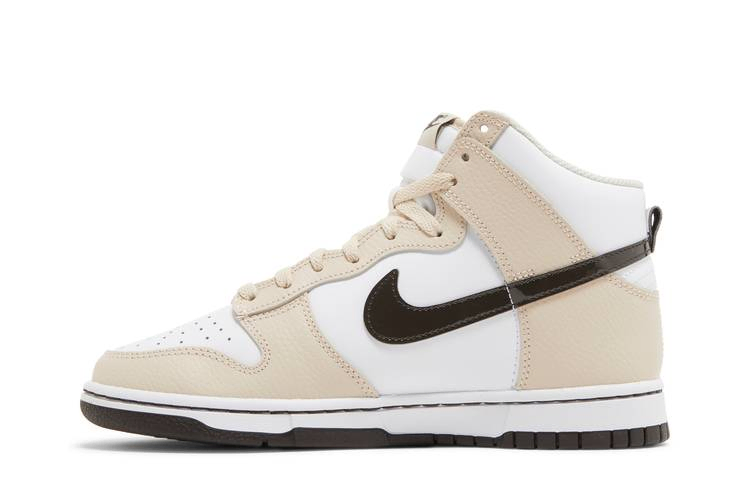 Женские кроссовки Nike Dunk High "Sanddrift" представляют собой винтажные кроссовки 80-х годов в дополнении к сочетанию изысканных земляных тонов. Верхняя часть из гладкой белой кожи сочетается с коричневой лакированной кожей Swoosh и накладками из галтованной кожи нежного оттенка загара. Традиционный брендинг Nike украшает тканый язычок и носок. Прочная подошва с белыми боковыми стенками и коричневой резиновой подошвой.