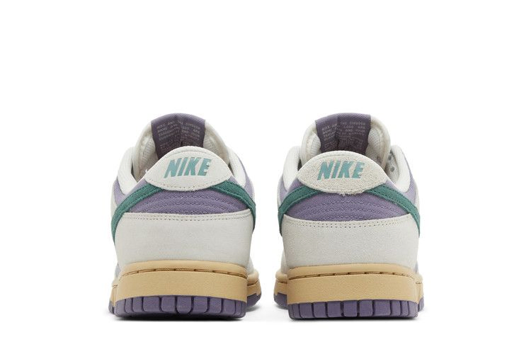 Женские кроссовки Nike Dunk Low "Daybreak Bicoastal" выполнены из холста лавандового оттенка, контрастирующего с белыми замшевыми накладками на носочной и пяточной частях. На боковой панели красуется изумрудный замшевый Swoosh, сочетающийся с тисненым знаком Nike, украшающим задник. Кроссовки установлены на резиновую подошву с состаренными боковыми стенками и прочной резиновой подошвой пастельно-фиолетового цвета.