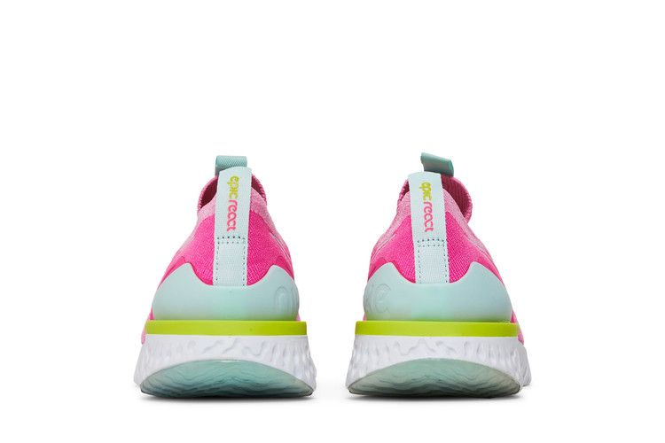 Сочетая гибкость и стабильность, Wmns Epic Phantom React Flyknit 'Psychic Pink' созданы из эластичных и неэластичных волокон в двухцветном переходе вдоль верха. Выпущенная в мае 2019 года, эта версия предназначена для летнего бега с едва заметным ощущением и контрастной клеткой пятки мятного цвета. Амортизация кроссовок, созданная для максимальной отдачи энергии, состоит из пены React с данными и рельефным рисунком сцепления.
