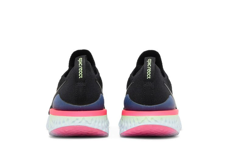 Выпущенные в 2019 году кроссовки Nike Wmns Epic React Flyknit 2 'Pixel' привносят яркие оттенки в обновленную итерацию силуэта Epic React. Дизайн остается похожим на своего предшественника с небольшими изменениями: более низкая пяточная клетка, преувеличенный Swoosh и новый тканый узор в верхней части Flyknit. Вдохновленные яркими оттенками технологического мира 90-х, кроссовки украшены смелыми акцентами Lime Blast, Hyper Pink и Sapphire на межподошве и подошве.