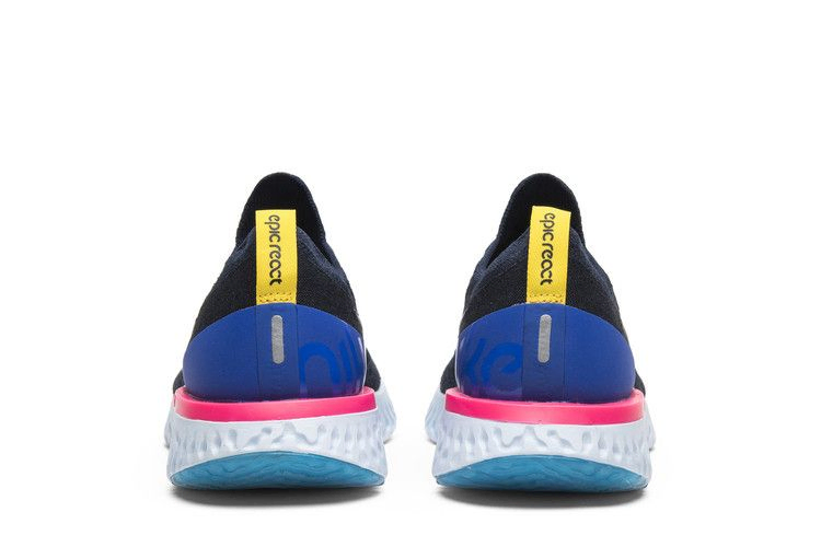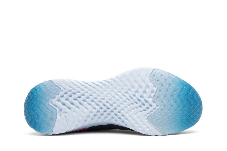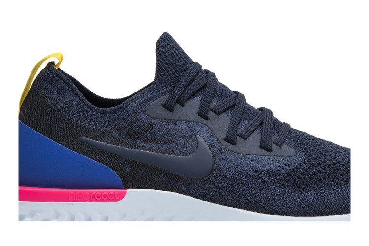 Модель Nike Epic React Flyknit, созданная с учетом потребностей бегунов, имеет точно спроектированный верх из материала Flyknit, который обнимает стопу, а также промежуточную подошву React, обеспечивающую легкую амортизацию и возврат энергии. Эта женская модель была одной из первых, представленных в феврале 2018 года. Она выполнена в цвете College Navy с акцентированными вкраплениями цвета на пяточной петле и стойке пятки. Белая подошва, выполненная из цельного куска пены React, дополнена ледяными полупрозрачными секциями на носке и пятке.