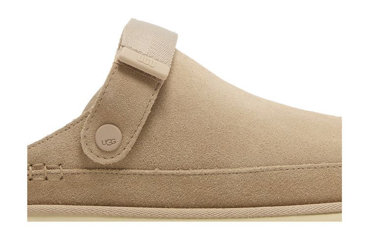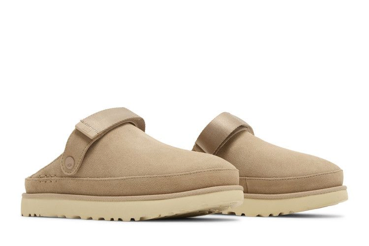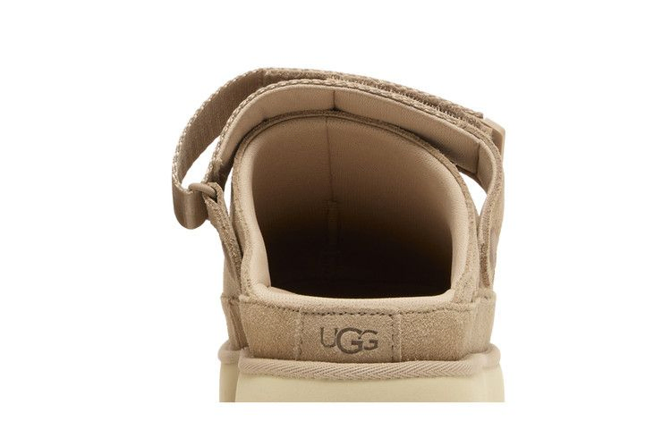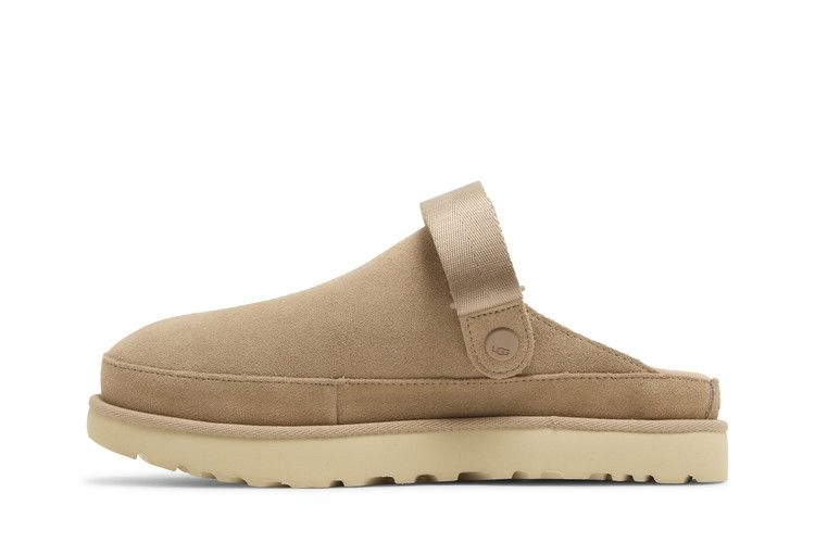 Женские ботинки UGG Women's Goldenstar Clog 'Driftwood' имеют замшевый верх нейтрального цвета загара. Стелька и мягкая текстильная подкладка из 100% переработанного полиэстера обеспечивают комфорт при ходьбе. Модель оснащена регулируемым ремешком для надежной фиксации. Ремешок также можно повернуть, чтобы он лежал сверху, обеспечивая легкое надевание и снимание. Промежуточная подошва EVA, изготовленная из переработанного EVA, обеспечивает легкую амортизацию. На боковом воротнике и задней части каблука вытиснен фирменный знак UGG.