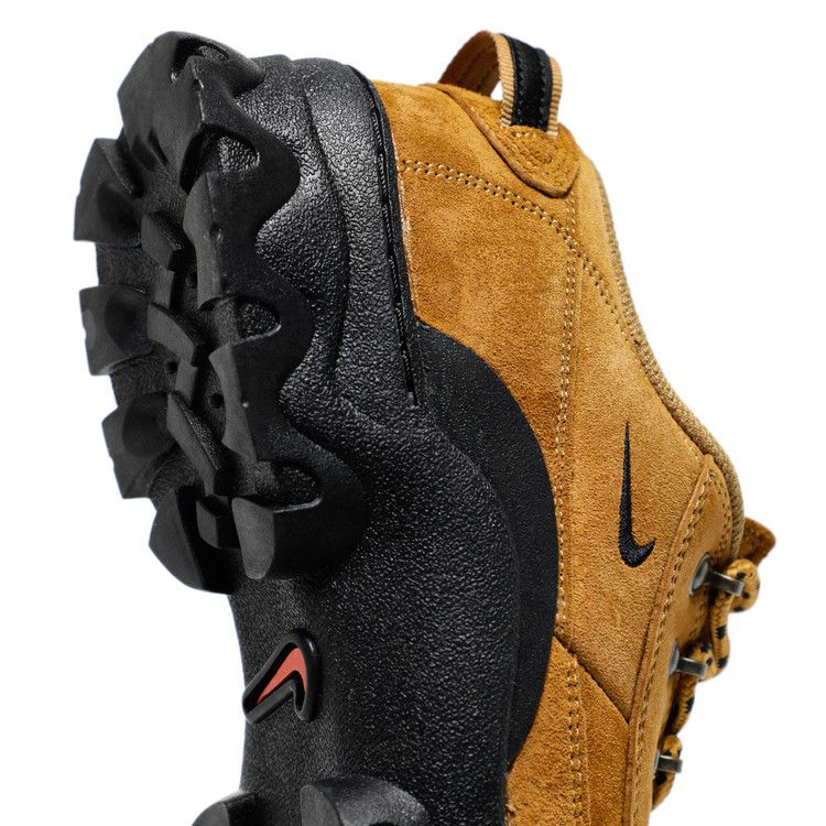 Женские кроссовки Nike Lahar Low 'Wheat' - это современная интерпретация модели Lahar Escape Boot 1989 года. Верх из замши темно-коричневого цвета закреплен веревочными шнурками и металлическими люверсами. Стелька на пятке облегчает надевание и снимание, а синтетическая накладка на боковой четверти обеспечивает дополнительную прочность. Контрастная черная подошва в мелкую крапинку, дополненная подошвой Air в пятке для легкой амортизации, имеет рисунок сцепления с бездорожьем для максимального сцепления.