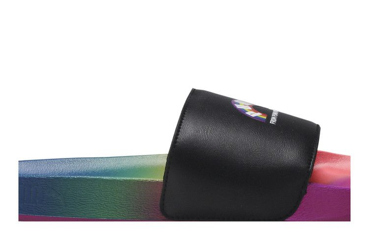 Женские кроссовки PUMA Leadcat Slide "Pride" посвящены сообществу ЛГБТКВ+ и украшены градиентной радужной отделкой на промежуточной подошве и стельке, последняя отмечена элементом брендинга с надписью "From PUMA With Love". Тот же слоган украшает черный ремешок из искусственной кожи, а также знак PUMA, интегрированный в радужную графику. Чистая белая подошва из EVA обеспечивает надежное сцепление с поверхностью.