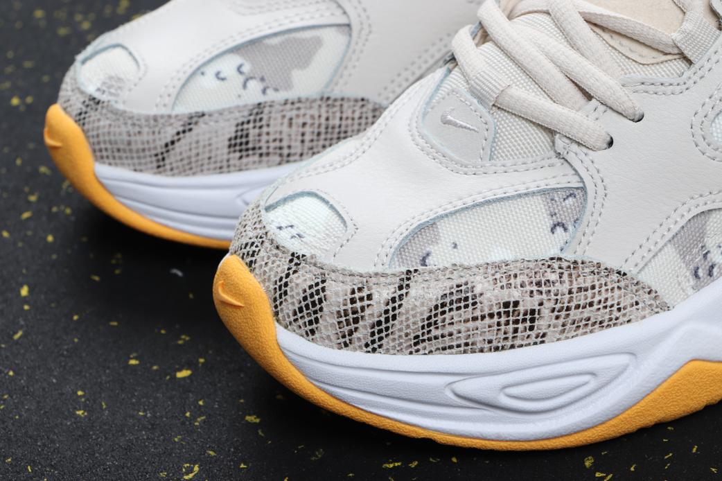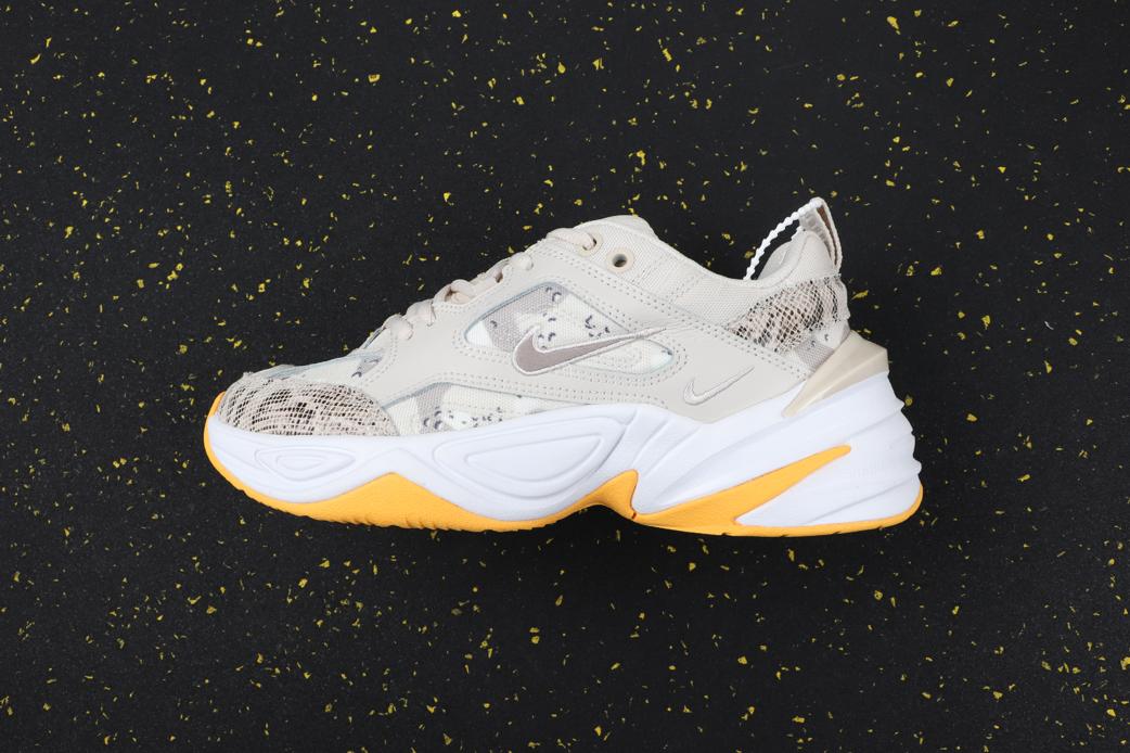 M2K Tekno Light Orewood выглядит эффектно в этом слегка окрашенном камуфляже и дополнении из змеиной кожи… M2K Tekno возвращается в цвете, очень похожем на окрас крокодила и камуфляж, который мы недавно видели на 98-х. Женский вариант использует текстильную основу с камуфляжным принтом с вставками из искусственной змеиной кожи на носке и на заднем каблуке, обрамленными текстилем Light Orewood Brown и синтетическими накладками. Яркая подошва Laser Orange дополняет образ, завершая одну из самых сильных обработок печати, которую мы видели на фоне силуэта Air Monarch.