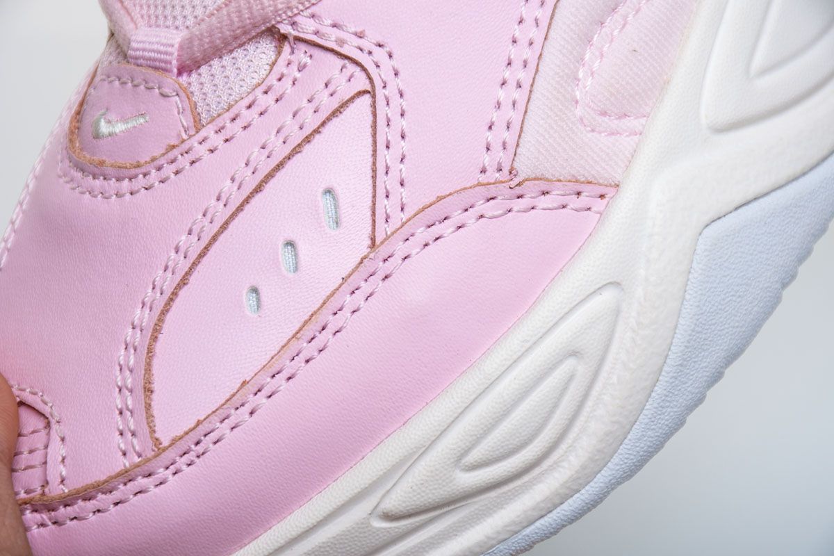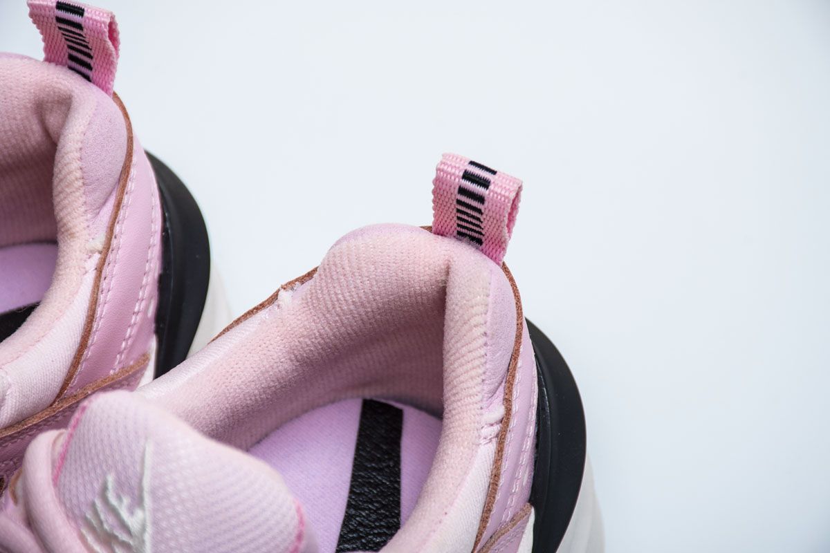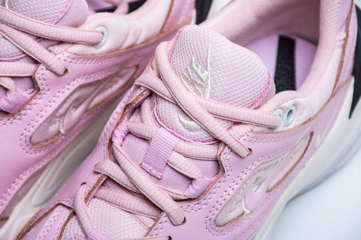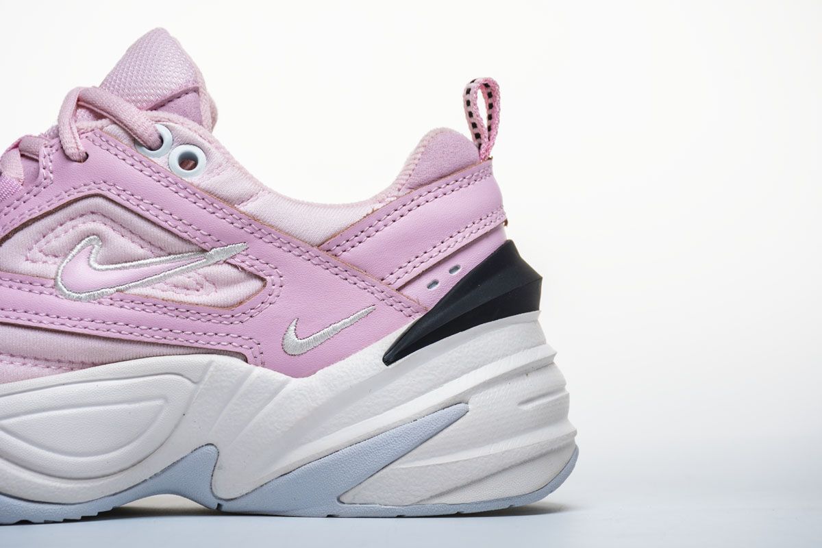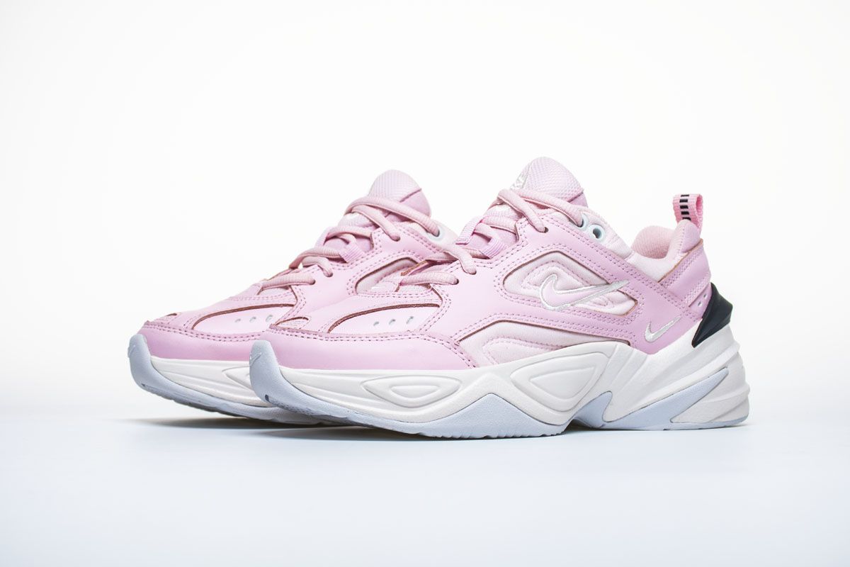 Женская модель M2K Tekno 'Pink Foam', в которой воплощена эстетика силуэтов 90-х годов Dadcore, имеет дополнительную толстую мидсоль и профиль, вдохновленный культовой классической моделью Air Monarch IV. Верхняя часть одета в светло-розовую окраску, а на язычках и ушках - мелкие белые галочки-swoosh. Чёрный задник компенсирует мягкие тона обуви.- Цвета: Pink Foam/Black-Phantom-White