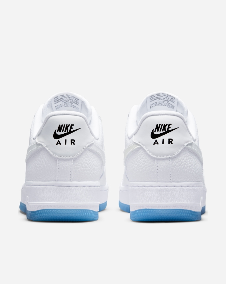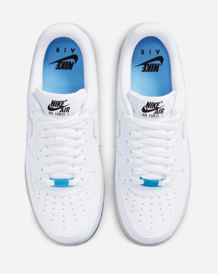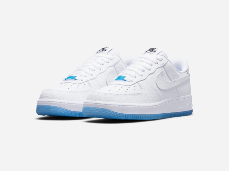 Модель имеет способность менять свой внешний вид, реагируя на свет. Модель Wmns Nike Air Force 1 '07 LX UV Reactive Swoosh имеет белый кожаный верх. Когда кроссовки подвергаются воздействию ультрафиолета, оранжевый оттенок кожи служит основой верха, который сочетается со светло-голубым брызговиком, красной стойкой пятки и красным Swoosh. Белая мидсоль и полупрозрачная голубая подошва завершают образ.- Цвета: White/White/White/University Blue