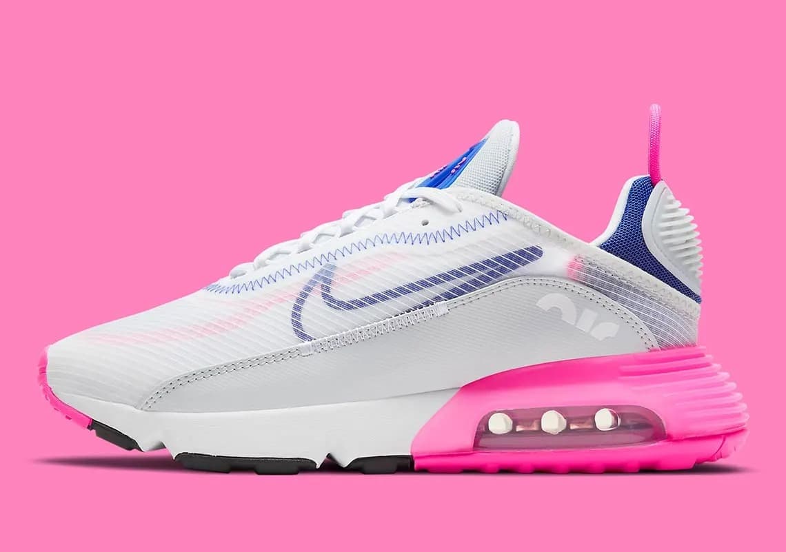 Женские кроссовки Wmns Nike Air Max 2090 Laser Pink демонстрируют яркую отделку. Полупрозрачный тканевый верх, прорезиненная накладка на пятке, брызговик из синтетической кожи составляют верхнюю часть. Мидсоль из мягкого пеноматериала и гибкие канавки на резиновой подошве обеспечивают комфорт при ходьбе и беге.- Цвета: White/Concord/Pink Blast/Pure Platinum
