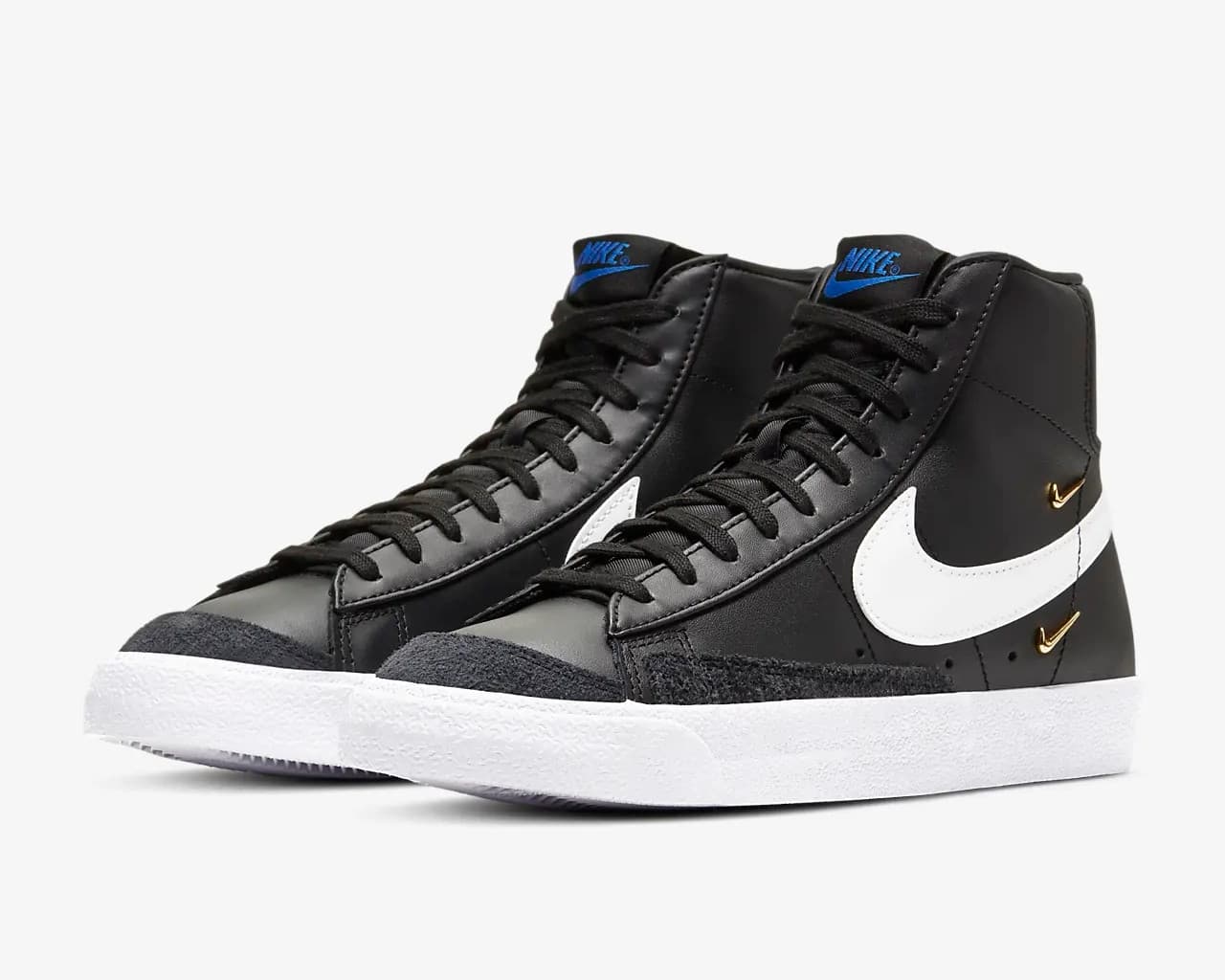Женская модель Nike Blazer Mid '77 SE "Black Metallic Gold", выпущенная в рамках коллекции бренда "Sisterhood", обновляет винтажный силуэт с помощью двухцветной схемы. Стандартный белый ретро Swoosh дополнен золотистыми 3D-мини-Swooshes, выделяющимися на фоне черной кожи. Неожиданный оттенок Hyper Royal присутствует на брендинге Nike на пятке и язычке из вспененного материала. Накладной принт на носочной части выражает тему расширения прав и возможностей женщин.- Цвета: Black/Hyper Royal/White/White