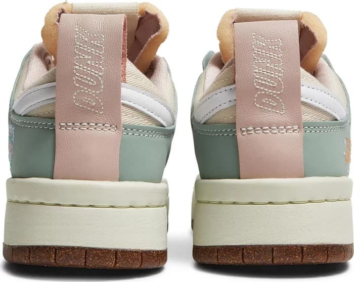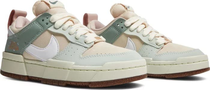 Женская модель Wmns Nike Dunk Low Disrupt Dandy Dandelions обновляет винтажный силуэт с помощью светлых тонов и зеленых акцентов. Бирка Nike украшает язычок из дышащего нейлона, а на пятке находится логотип Nike. Кроссовки стоят на стандартной резиновой подошве с протравленными канавками.- Цвет: Pearl White/Sea Glass/Seafoam