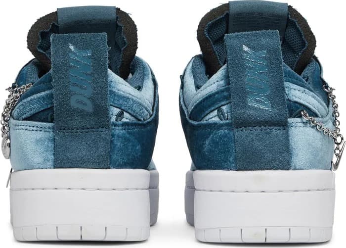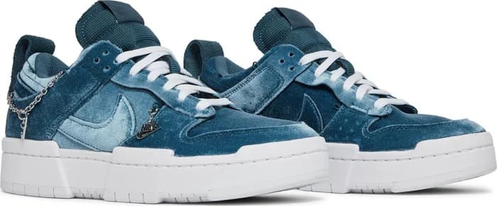 Женская модель Wmns Nike Dunk Low Disrupt Lucky Charms - Ash Green обновляет винтажный силуэт с помощью отделки джинсового цвета с железной цепью и свушем. Бирка Nike украшает язычок из дышащего нейлона, а на пятке находится логотип Nike. Кроссовки стоят на стандартной резиновой подошве с протравленными канавками.- Цвет: Ash Green/White/Ash Green