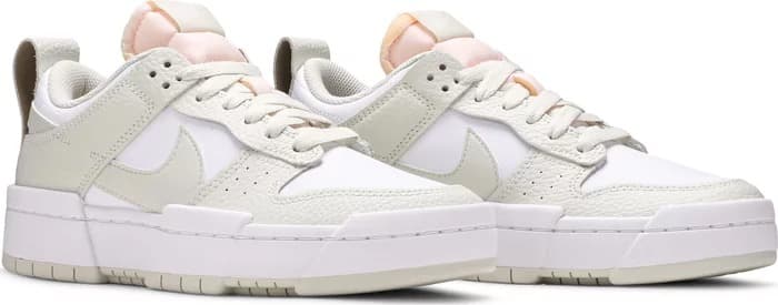 Женские кроссовки Nike Dunk Low Disrupt "Sea Glass" представляют собой современный, реконструированный вариант винтажного силуэта. Верх из цельной кожи имеет белую основу с контрастными накладками приглушенного оттенка загара. Нежно-розовый оттенок отличает язычок из вспененного материала, который сочетается с кожаной накладкой на пятке, создавая образ в стиле DIY. Низкий верх установлен на сегментированную платформенную промежуточную подошву с деталями стежков. Гибкие канавки на резиновой подошве обеспечивают плавный ход.- Цвет: White/Sea Glass