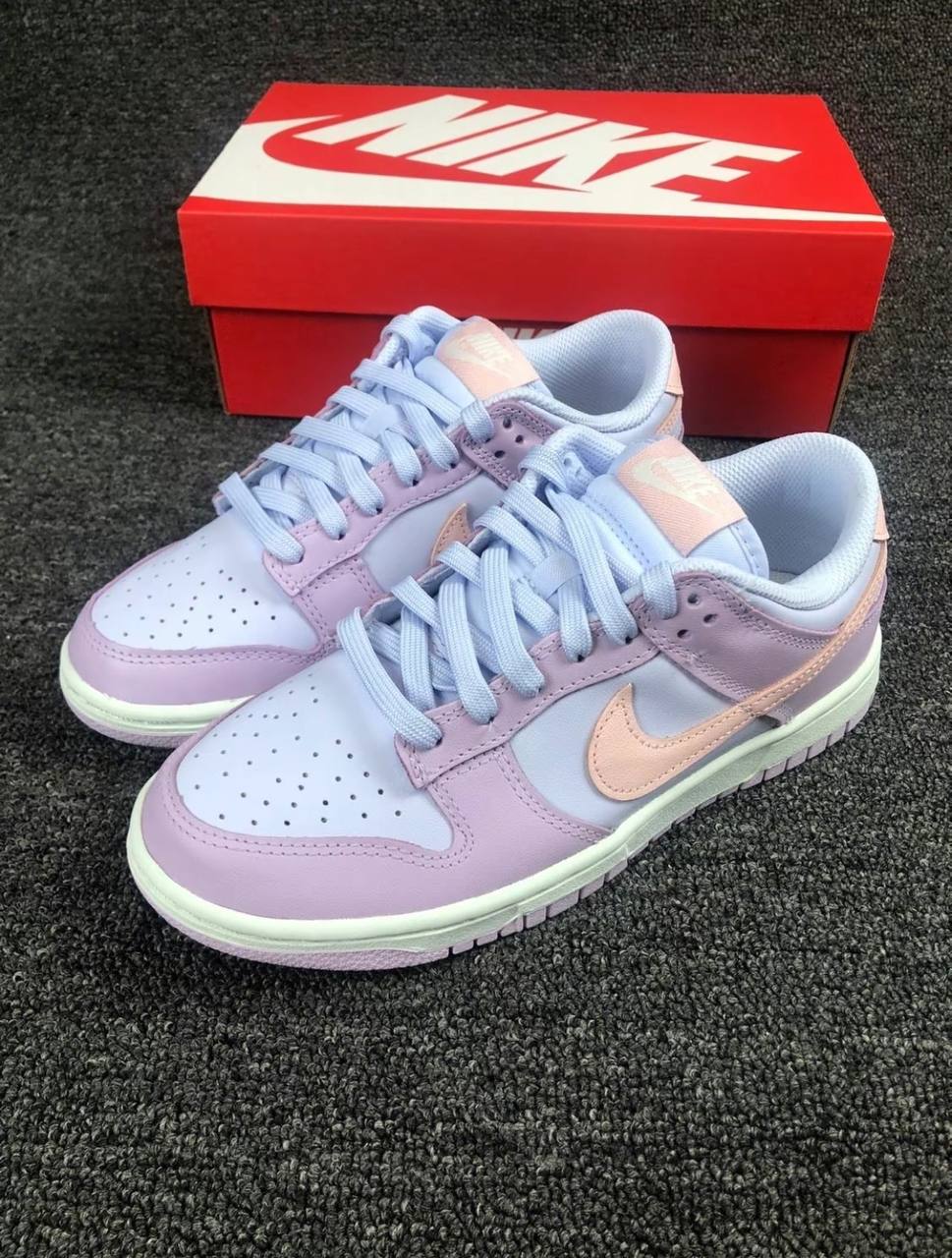 Женские кроссовки Nike Dunk Low "Easter" - это классический силуэт, получивший весеннее обновление с использованием пастельных оттенков. Низкие кроссовки выполнены из гладкой кожи, имеют пудрово-голубую основу с лавандовыми накладками и нежно-розовым Swoosh. Тканая бирка Nike украшает нейлоновый язычок с легкой набивкой, который в паре с воротником с низким вырезом обеспечивает удобную посадку. Кроссовки опираются на прочную резиновую подошву, дополненную резиновой подметкой с поворотной точкой, предназначенной для сцепления с паркетом.