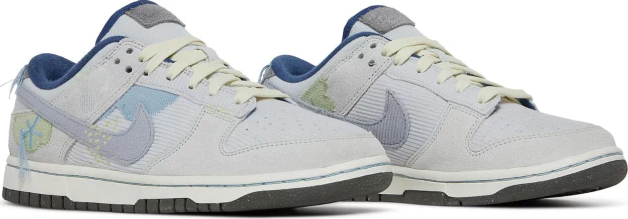 Женские кроссовки Wmns Nike Dunk Low On The Bright Side - Photon Dust привносят в ретро-обувь 80-х годов эстетику состаренности, подчеркиваемую предварительно пожелтевшей резиновой подошвой. Шнурки кремового цвета фиксируют верхнюю часть. Контрастные синие оттенки присутствуют на логотипе Swoosh, накладках на носке и пятке, которые имеют тонкий блеск и легкую текстуру. На дышащем нейлоновом язычке располагается тканая бирка классическим брендингом Nike.- Цвет: Photon Dust/Wolf Grey/Sail