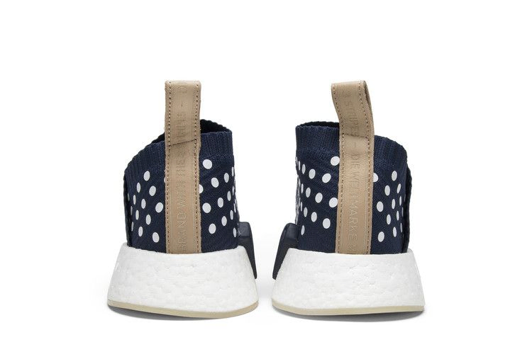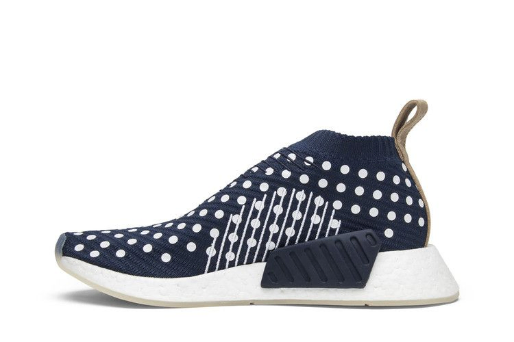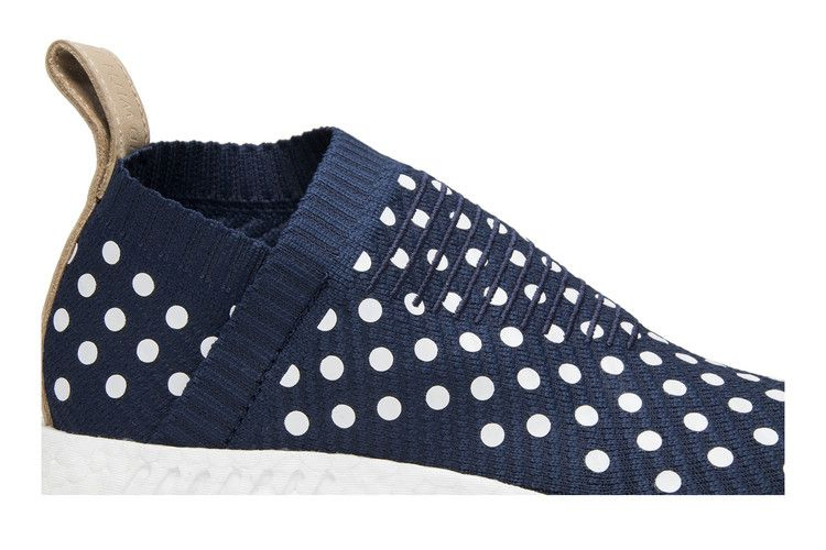 Женские NMD_CS2 PK, выпущенные в апреле 2017 года в составе пакета "Ronin", имеют верх из праймскинита цвета морской волны, украшенный белыми точками в горошек на фоне цвета Collegiate Navy. Модель без шнурков установлена на белую промежуточную подошву Boost со стабилизирующей вставкой из TPU темно-синего цвета на медиальной стороне и полупрозрачной резиновой подошвой. На заднике - петля для пятки из дубленой кожи, добавляющая деревенский штрих.
