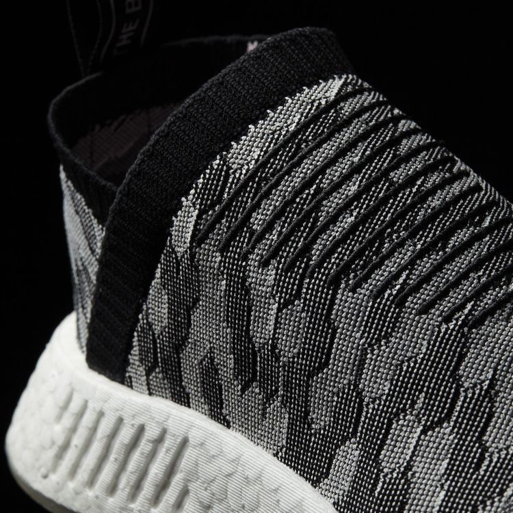 Черно-белая модель adidas NMD_CS2, представленная в женских размерах, вышла в июле 2017 года. Силуэт слип-он включает в себя верхнюю часть из материала Primeknit с уникальным геометрическим узором, подчеркнутым сплошными черными вставками на воротнике и горизонтальными рядами стежков на заднике. Белая межподошва Boost, укрепленная полупрозрачной резиновой подошвой, выделяется контрастным розовым цветом на медиальной боковой вставке. Дополнительный розовый цвет присутствует на внутренней стороне воротника.