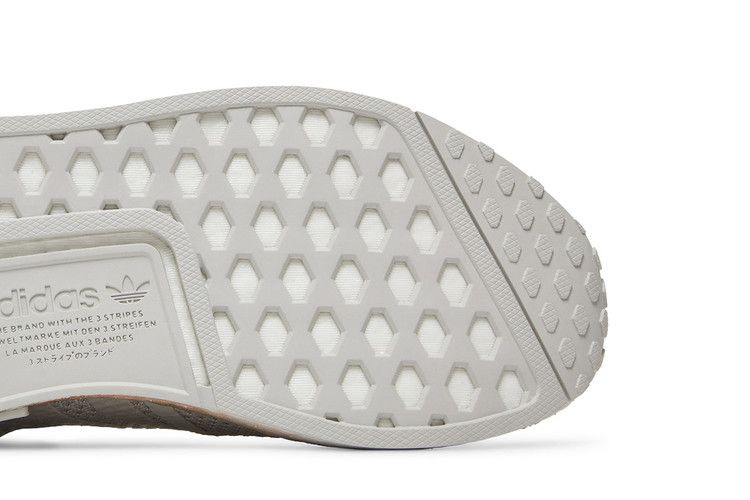 В женских NMD_R1 "Grey Gold" фирменная межподошва Boost приобрела новый вид: пятка цвета розового золота с металлическим отливом постепенно переходит в белую отделку на носке. На боковой стороне несовпадающие заглушки EVA золотого и серого цветов дополняют эффект градиента. Последний оттенок монохроматично использован в дышащем трикотажном верхе, который облегает стопу, обеспечивая плотную и комфортную посадку.