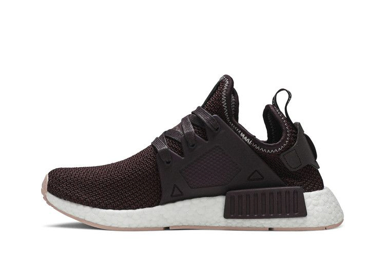 Темно-бордовые NMD_XR1 - одна из трех расцветок, представленных в эксклюзивном женском пакете "Contrast Stitch", название которого связано со светлой строчкой на воротнике кроссовка. Кроссовки выполнены из сетчатой ткани в тон и имеют резиновый каркас, который является отличительной чертой XR1. Белая промежуточная подошва Boost дополнена светло-розовой подошвой, а на пятке и язычке красуется тональный красный брендинг. NMD_XR1 в темно-бордовом цвете была выпущена в ноябре 2017 года вместе с двумя родственными расцветками.