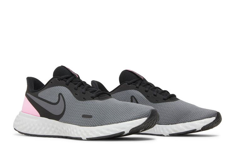 Кроссовки Nike Wmns Revolution 5 обеспечивают легкую, дышащую поддержку в минималистичном образе. Этот женский вариант, дебютировавший в октябре 2019 года, имеет темно-серый трикотажный верх с усиленной пяткой Psychic Pink, тональными Swooshes и синтетическими деталями. Брендинг на язычке и акцент на носочной части отражаются при слабом освещении. Промежуточная подошва из текстурированной пены обеспечивает плавные переходы, а резиновая подошва оптимизирована для различных поверхностей.