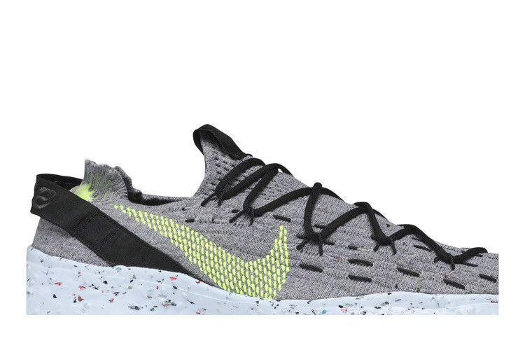 Женские кроссовки Nike Space Hippie 04 "This Is Trash" взяты из исследовательской коллекции обуви, созданной из "космического хлама", концепция которой вдохновлена нехваткой материалов, сопровождающих жизнь на Марсе. Темно-серый верх Flyknit, украшенный фирменным логотипом Nike Swoosh яркого цвета Volt, изготовлен из пряжи Space Waste Yarn, на 85% состоящей из переработанного полиэстера. Промежуточная подошва Crater Foam с крапинками создана из комбинации резины Nike Grind Rubber и пеноматериалов из вторичного сырья.