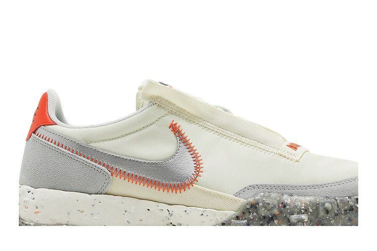 Женские кроссовки Nike Waffle Racer Crater "Coconut Milk" отличаются нежной палитрой, вдохновленной оригиналом 1977 года. 100% переработанный полиэстер входит в состав текстильного верха кремового цвета, украшенного серебристым металлическим логотипом Swoosh и зигзагообразной строчкой. Серые замшевые накладки и оранжевый кожаный язычок на пятке подчеркивают винтажную эстетику кроссовок. Легкая конструкция располагается на промежуточной подошве Crater Foam, поддерживаемой подошвой Nike Grind с крупными накладками.