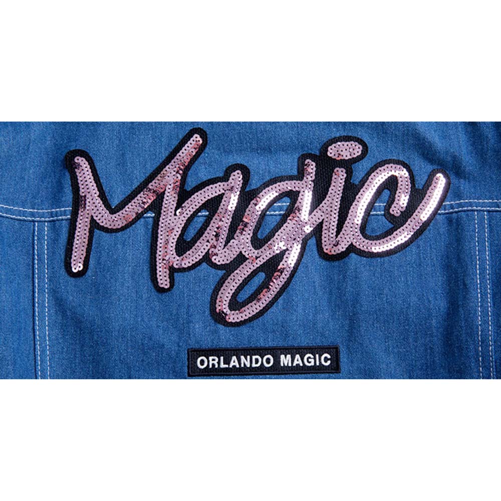 Женская куртка 2020 Orlando Magic Jacket Womens создана в двух цветах из высококачественного хлопка. Слева на груди расположено лого команды Orlando Magic, а сзади — надпись «MAGIC», выполненная из розовых или серебряных пайеток.